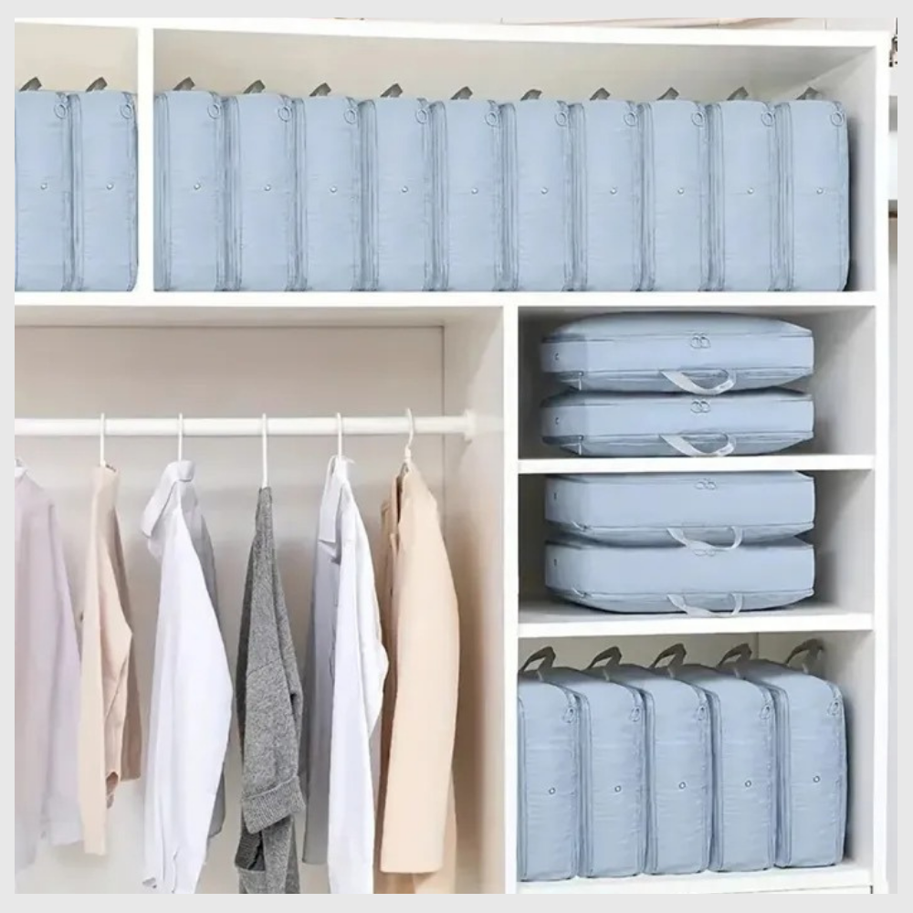 Transform your closets and suitcases in seconds. With EspaceFacile™, simply fold, zip, and compress your items—no vacuum needed. Protect your clothes, blankets, and keepsakes from dust and moisture while saving up to 50% more space.