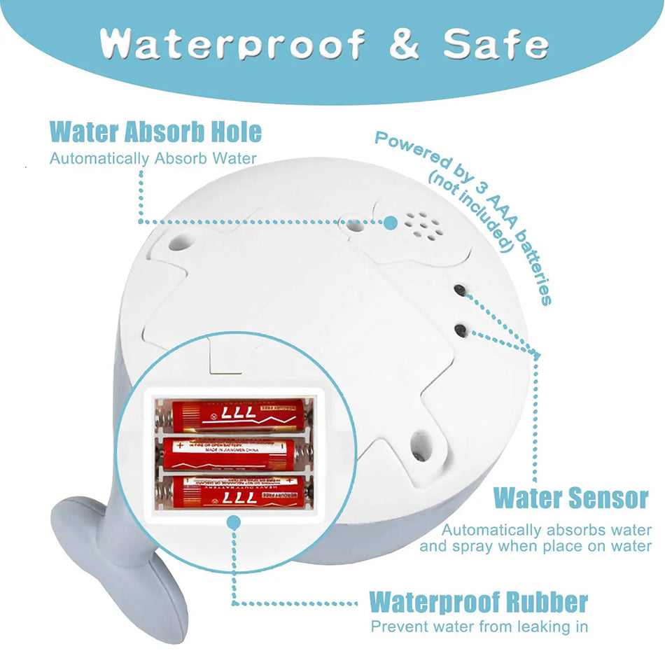 Thanks to the sensor, the whale is very easy to use. Simply place the whale in the water and it will start spraying. Take it out of the water, and it will automatically turn off. All you have to do is install the batteries yourself.
