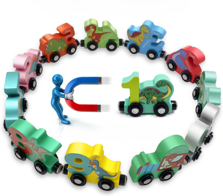 • The wooden dinosaur train is equipped with built-in magnets, allowing the wagons to easily connect to each other.