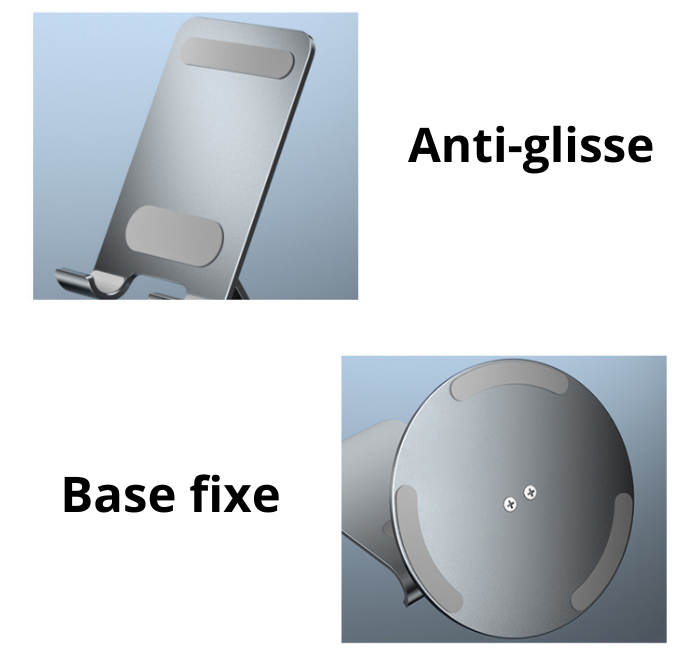The stand is equipped with a non-slip, residue-free adhesive tape that securely fastens your device in place. The silicone base ensures a stable work surface, preventing any inconvenient movement. Its ergonomic design makes it a practical choice for everyday use
